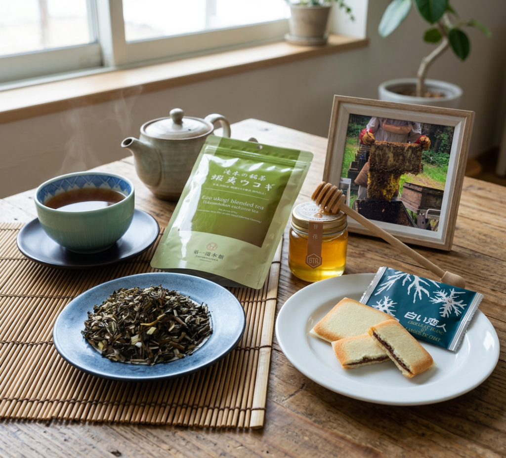 This month’s box includes Ezo Ukogi herbal tea, a traditional herbal drink from Hokkaido known for supporting vitality and wellness.