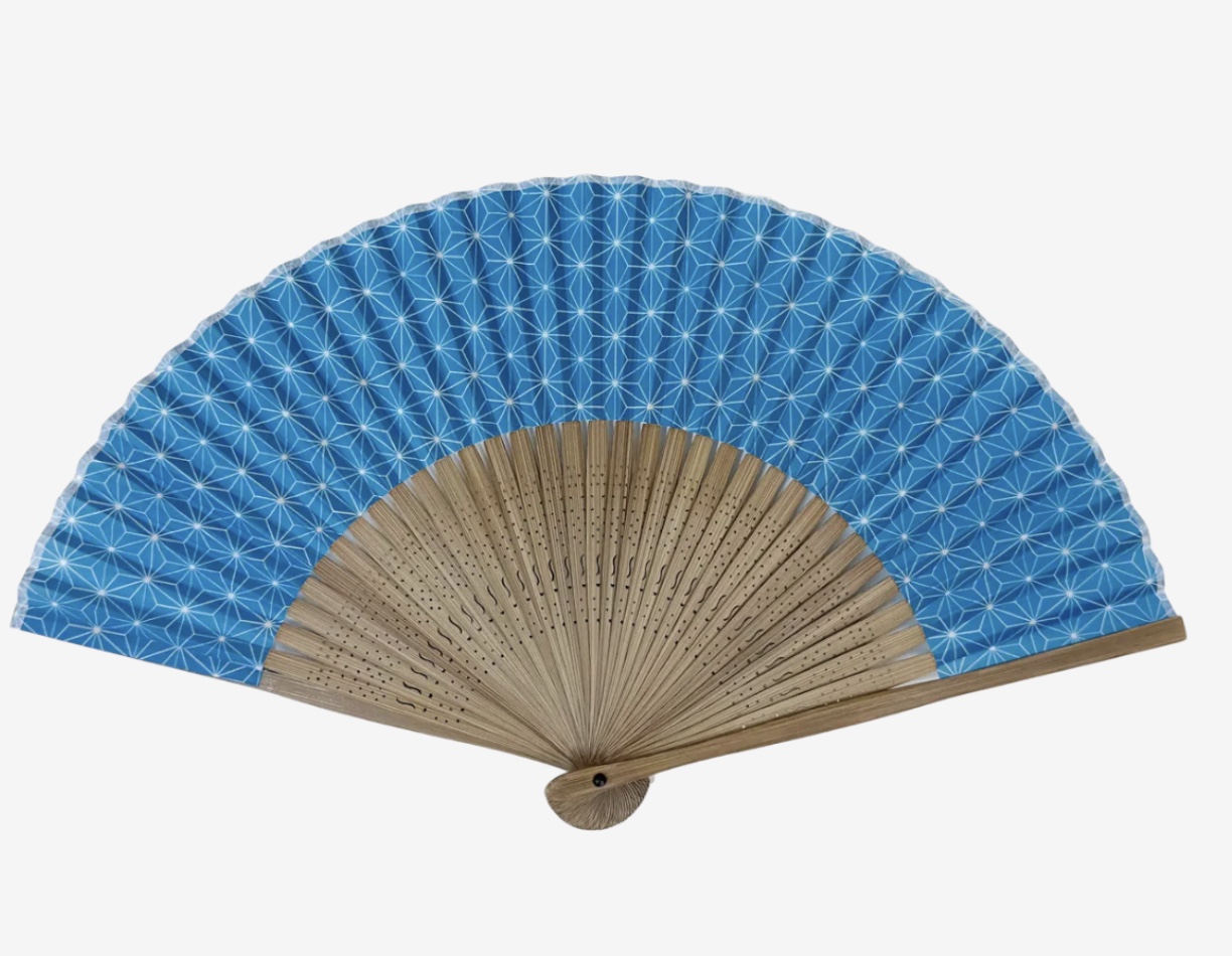 Edo Pattern Folding Fan – Asanoha (Light Blue)